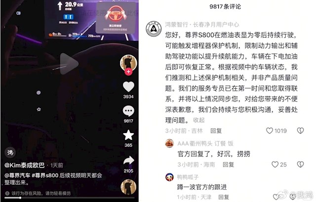 那么这辆尊界S800究竟发生了什么?针对此事,男子购车的鸿蒙智行长春净月用户中心在评论区进行了回应: